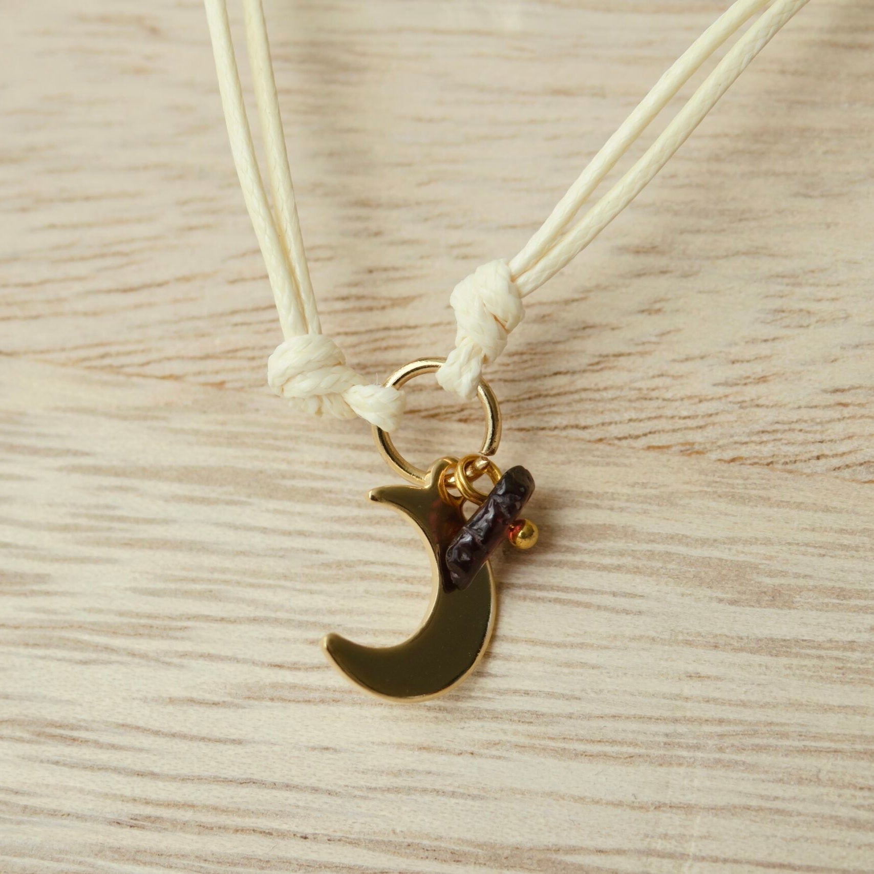 Armband met Gewaxed Katoen - "Weave Creme" - Maan & Granaat