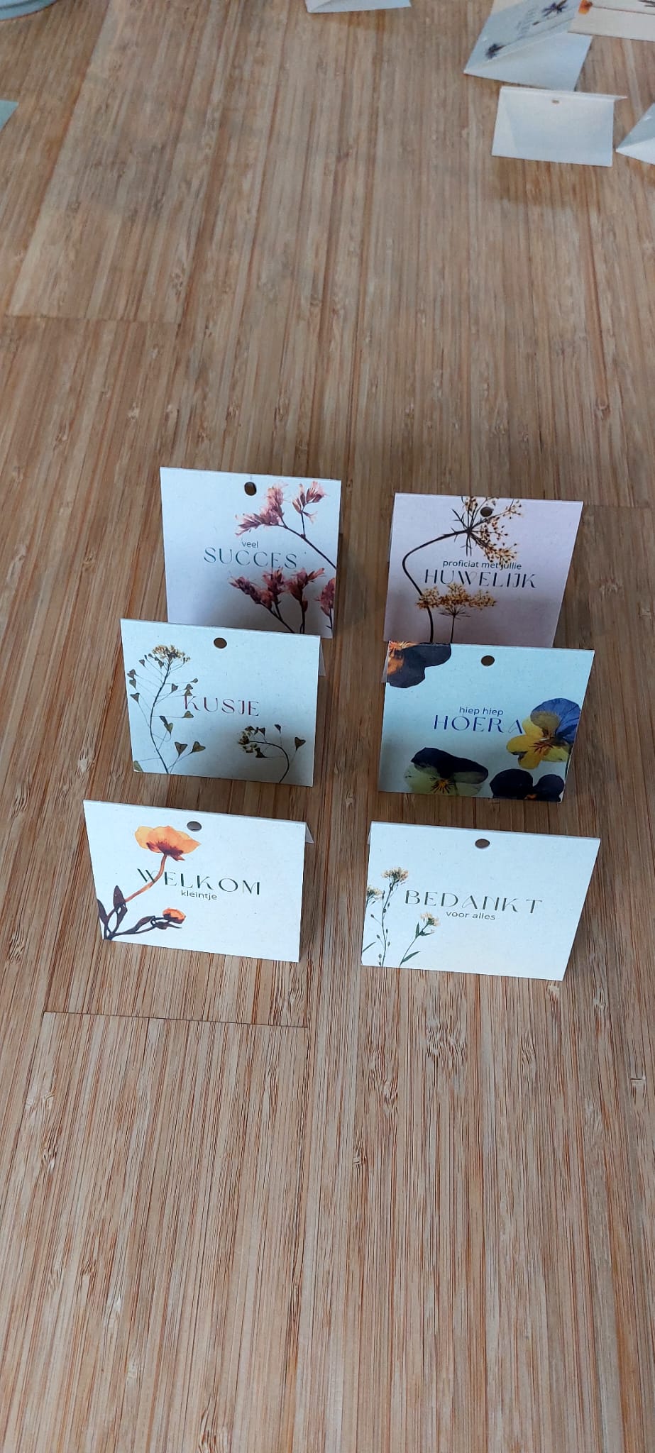 De Fier kaarten zijn geïnspireerd op de serie Weideblik - veldbloemen die langs de Dommel geplukt zijn, met zorg gedroogd en vervolgens als tijdloze stillevens zijn gefotografeerd.