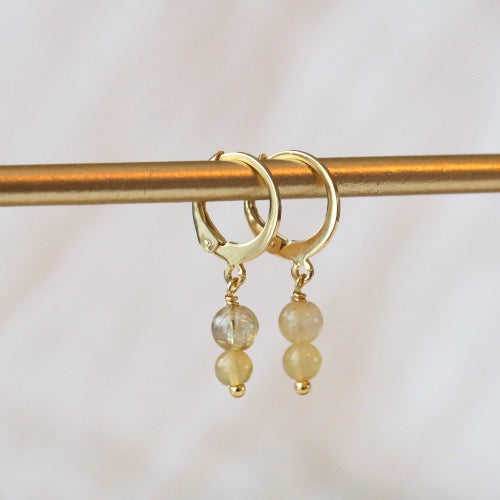 Goudkleurige Huggie oorbellen - 'Sunset' - Gele Opaal & Rutielkwarts