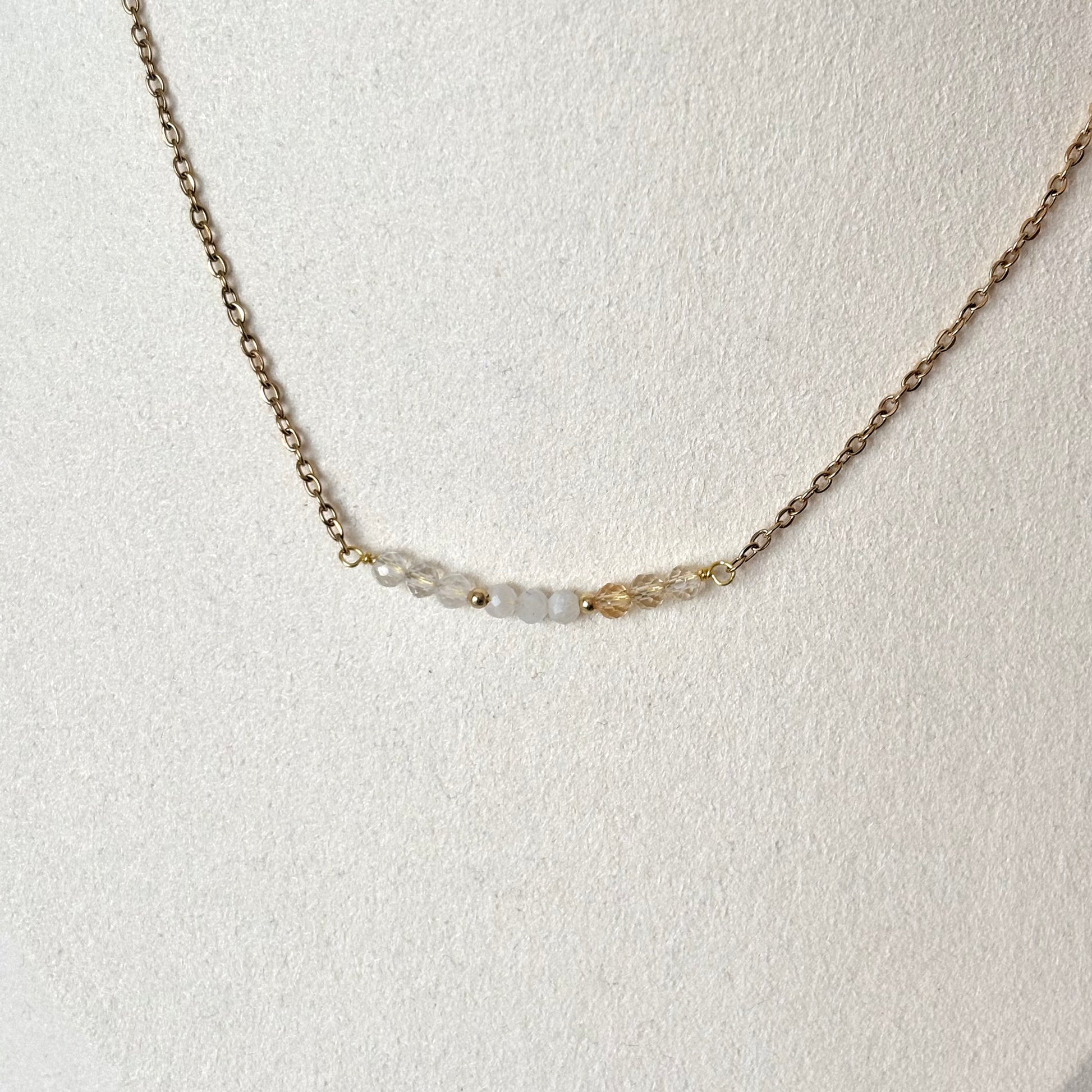Ketting - 'Bar' - Citrien, Maansteen, Bergkristal