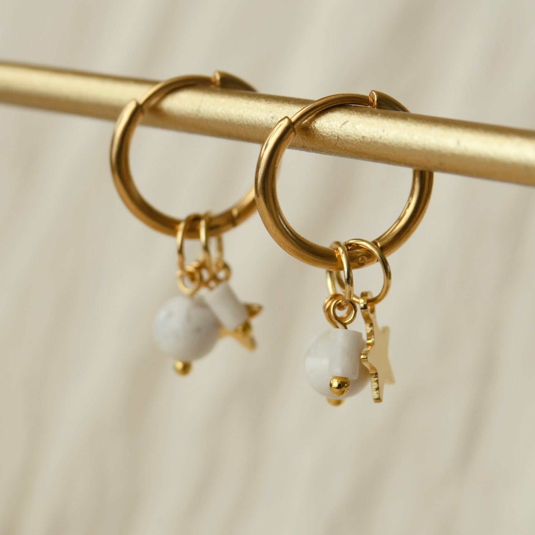 Happy Hoops zijn afgewerkt met prachtige edelstenen en verfijnde bedels. De creolen hebben een afmeting van ±15mm.