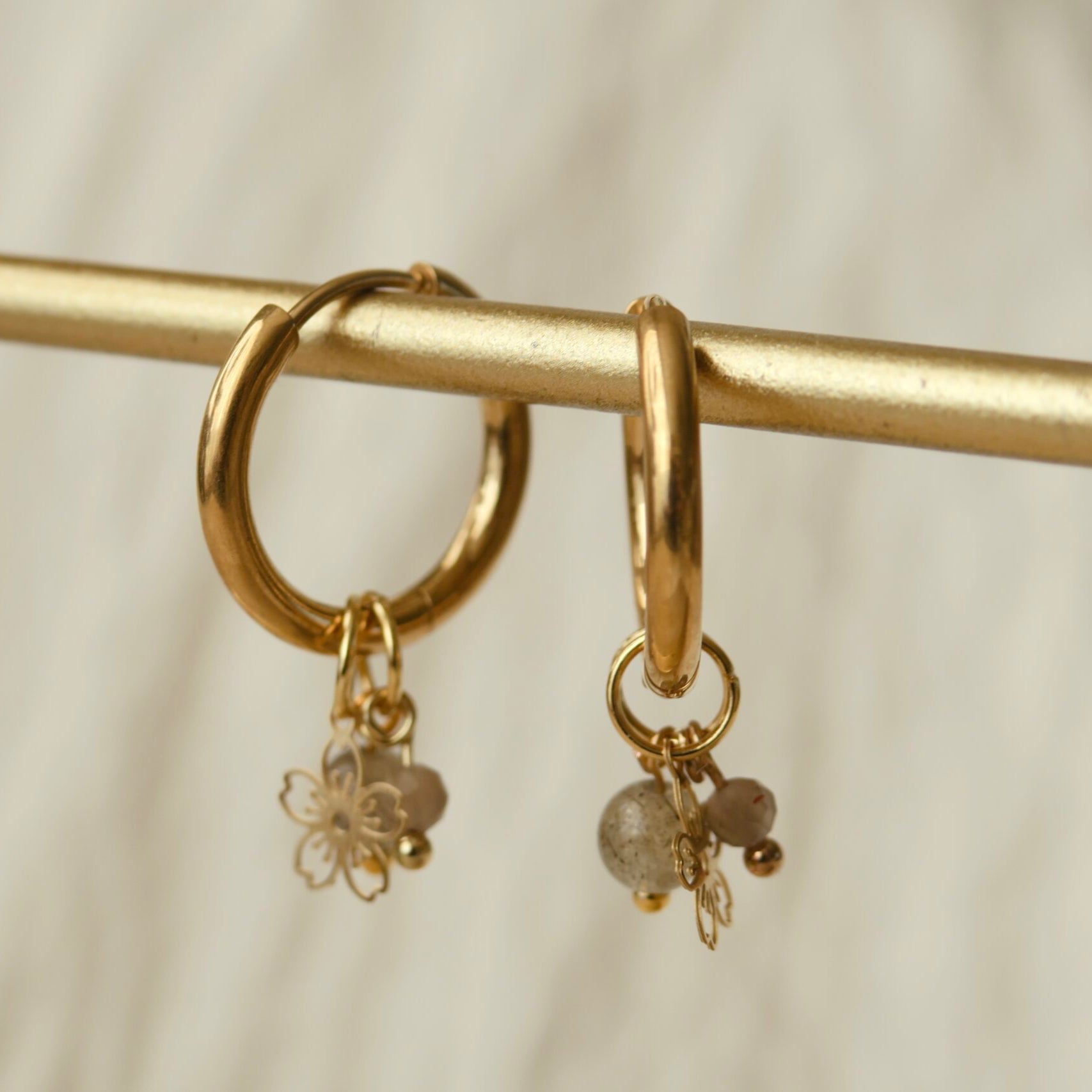 Happy Hoops zijn afgewerkt met prachtige edelstenen en verfijnde bedels. De creolen hebben een afmeting van ±15mm.