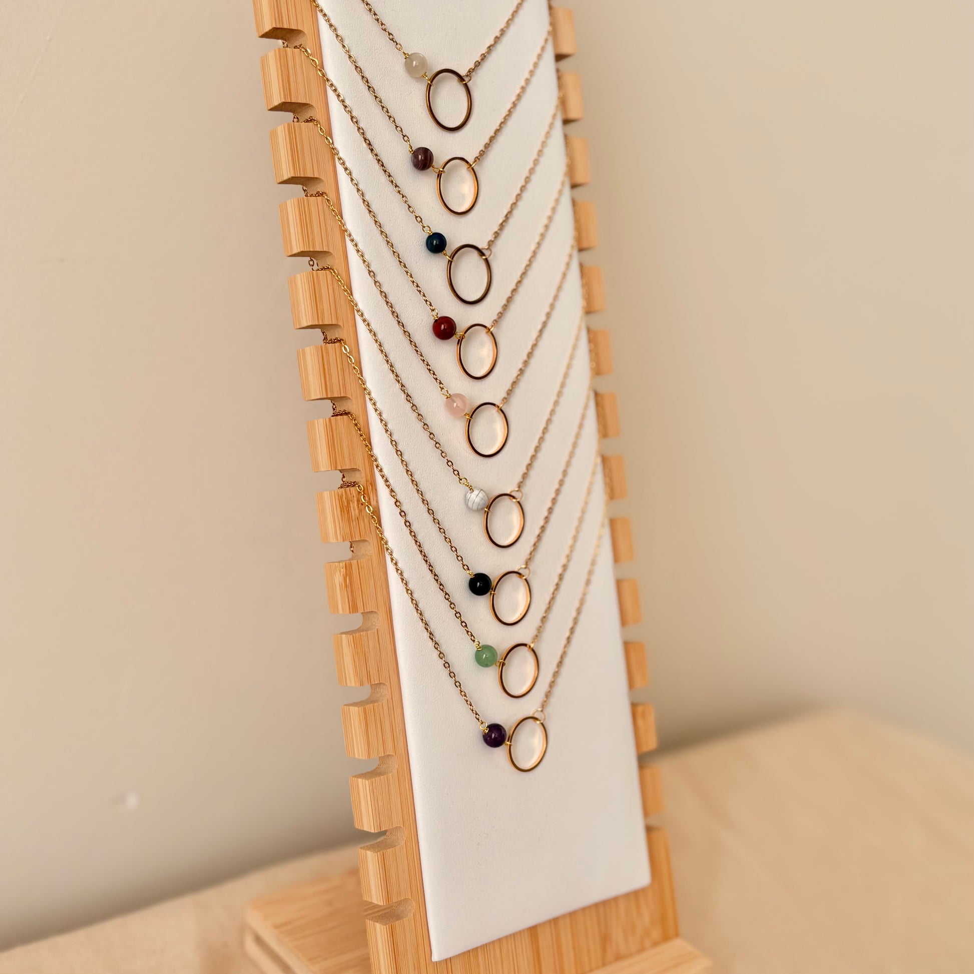 Bij aanschaf van de gehele collectie Aurora kettingen wordt de display kosteloos meegeleverd.